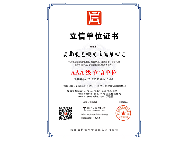 全國覆蓋全國服務區域5.6萬+客戶認可服務企業150萬+AAA申請證書中科企服——企業AAA認證與3A認證的引領者中科企服是一家致力于為企業提供AAA認證、3A認證及企業3A信用等級認證服務的專業機構。我們秉持著科學、專業、高效的服務理念,為企業提供全方位、一站式的認證服務,助力企業實現可持續發展。我們的AAA認證服務包括企業信用等級認證、質量管理體系認證、環境管理體系認證和職業健康安全管理體系認證等。這些認證都是對企業綜合實力和運營能力的肯定,能夠提升企業在市場上的信譽度和競爭力。3A認證服務則涵蓋了企業信用評估、企業資信評估和企業品牌評估等方面。通過... 【了解更多】