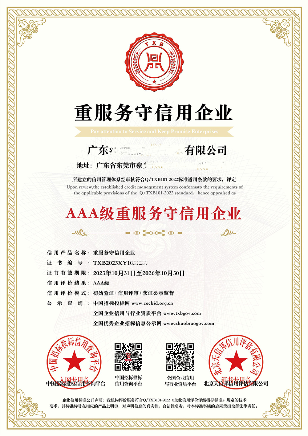 AAA級重服務(wù)守信用企業(yè)認(rèn)證是對企業(yè)在服務(wù)方面的高度認(rèn)可,表示該企業(yè)在服務(wù)質(zhì)量、客戶滿意度、售后服務(wù)等方面表現(xiàn)出色,并且在經(jīng)營過程中遵守誠信原則,具備良好的商業(yè)信譽。