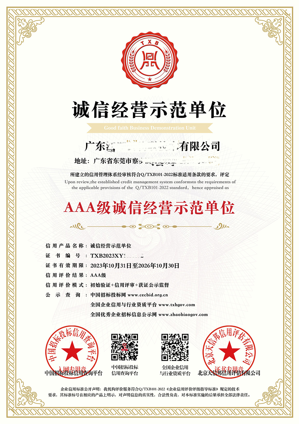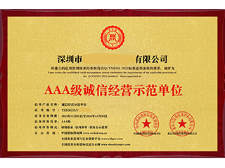 通過(guò)評(píng)選和表彰AAA級(jí)誠(chéng)信經(jīng)營(yíng)示范單位,可以激勵(lì)企業(yè)加強(qiáng)自律,提高誠(chéng)信意識(shí),增強(qiáng)消費(fèi)者對(duì)企業(yè)的信任度,推動(dòng)市場(chǎng)競(jìng)爭(zhēng)的公平和透明,維護(hù)市場(chǎng)秩序,促進(jìn)經(jīng)濟(jì)的可持續(xù)發(fā)展。具體的AAA認(rèn)證證書(shū)是可以根據(jù)客戶的需求定制,大致的流程為洽談需求→付款→提交資料→確認(rèn)電子版證書(shū)→制作證書(shū)和牌匾→公示及郵寄。