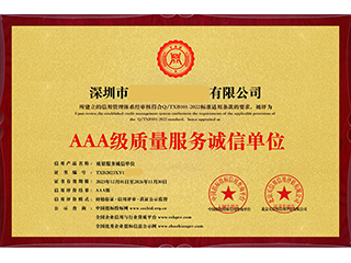3A認(rèn)證AAA級(jí)質(zhì)量服務(wù)誠(chéng)信單位認(rèn)證證書有效期三年。